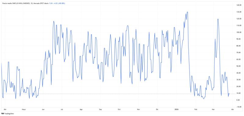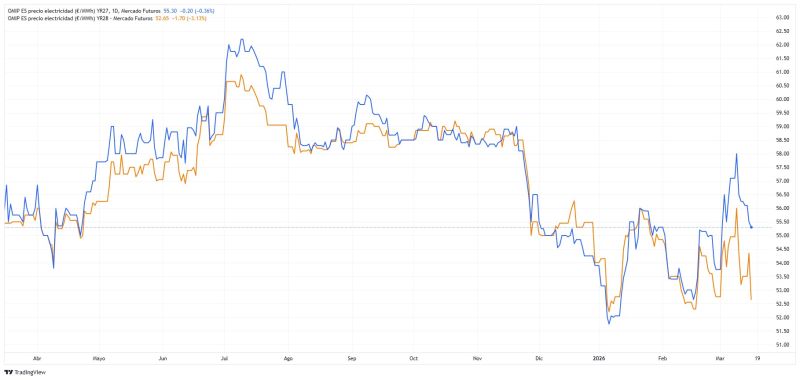 OMIE El mercado diario cotiza hoy a 37.89 €/MWh y sitúa el promedio mensual en 67.87 €/MWh, casi a mitad de mes. Los altos precios del gas están impactando en todos los mercados, a lo que se suma una generación eólica baja para la época, tras un mes de febrero de récord. En los próximos días se prevé un aumento de la generación renovable y precios más moderados. Los futuros de electricidad y gas para 2026 han repuntado y fluctúan con gran volatilidad en función de las noticias, las declaraciones y lo ataques.